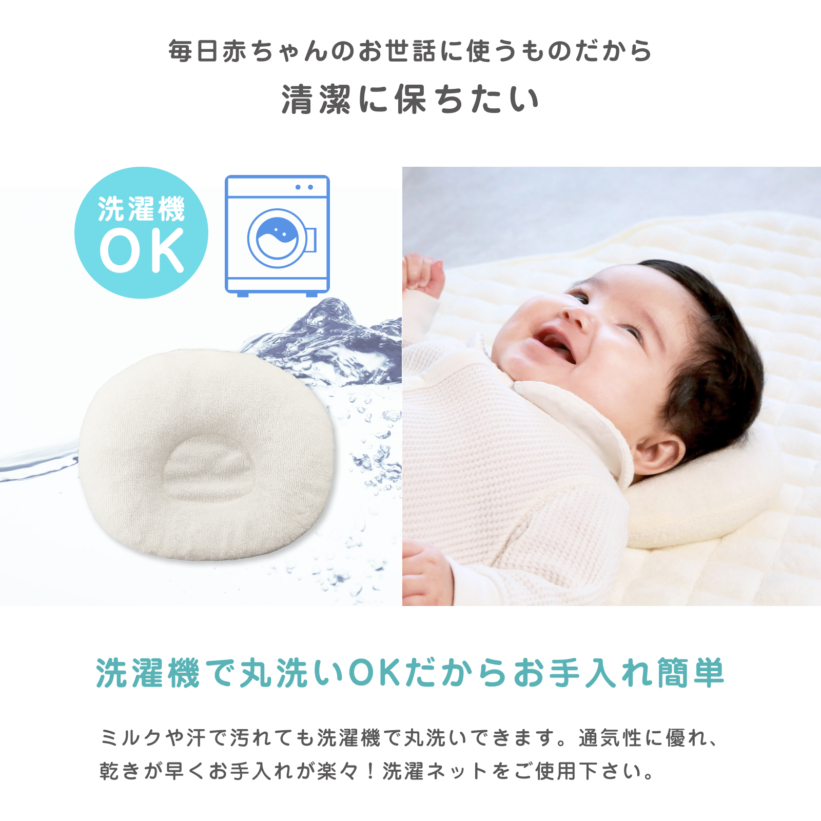 | 商品説明 | 【対象年齢】新生児から〜 赤ちゃんの頭の形を整えてくれるドーナツ型まくらです。 いつもとは違う方向に赤ちゃんを向かせることで、「向き癖」「絶壁」「寝ハゲ」を防ぎます。 中材には通気性のよいエアーパイプを採用。 「ホコリが出にくい」「蒸れにくい」「へたりにくい」などの特徴があります。 洗濯機で丸洗いできるのも嬉しいポイント。 赤ちゃんの頭にやさしくフィットします。 |