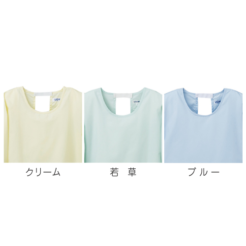 給食着かっぽう着型 カラー 140/150cm制菌加工 | 長袖 マジックテープ 青 緑 黄色 袖口ゴム替え簡単 かぶり式 学校給食 給食エプロン 無地 割烹着 作業着 着脱簡単 シンプル 子ども 幼稚園 保育園 小学校 中学校 高校 学校 スクール ラビットアース 宇高 うだか