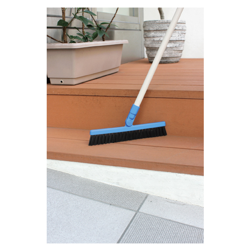 | 商品内容 | ●外寸:幅300×長1395mm ●重量:約495g ●材質:頭=PP,ブラシ=PET100%,柄=スチールパイプにPE接着被覆,ジョイント=POM樹脂 |