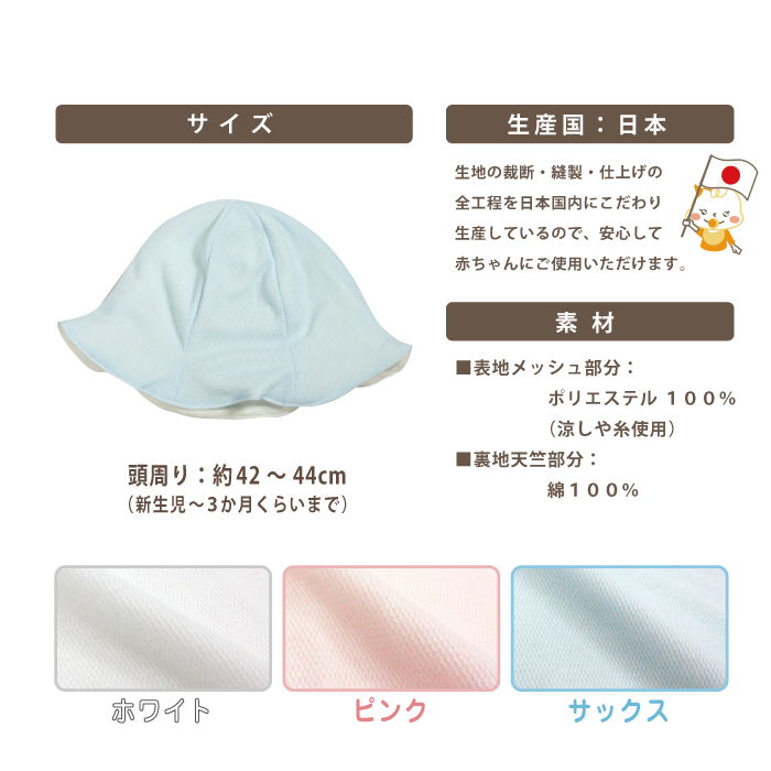 | サイズ | 頭周り:42〜44cm(新生児〜5か月くらいまで) |